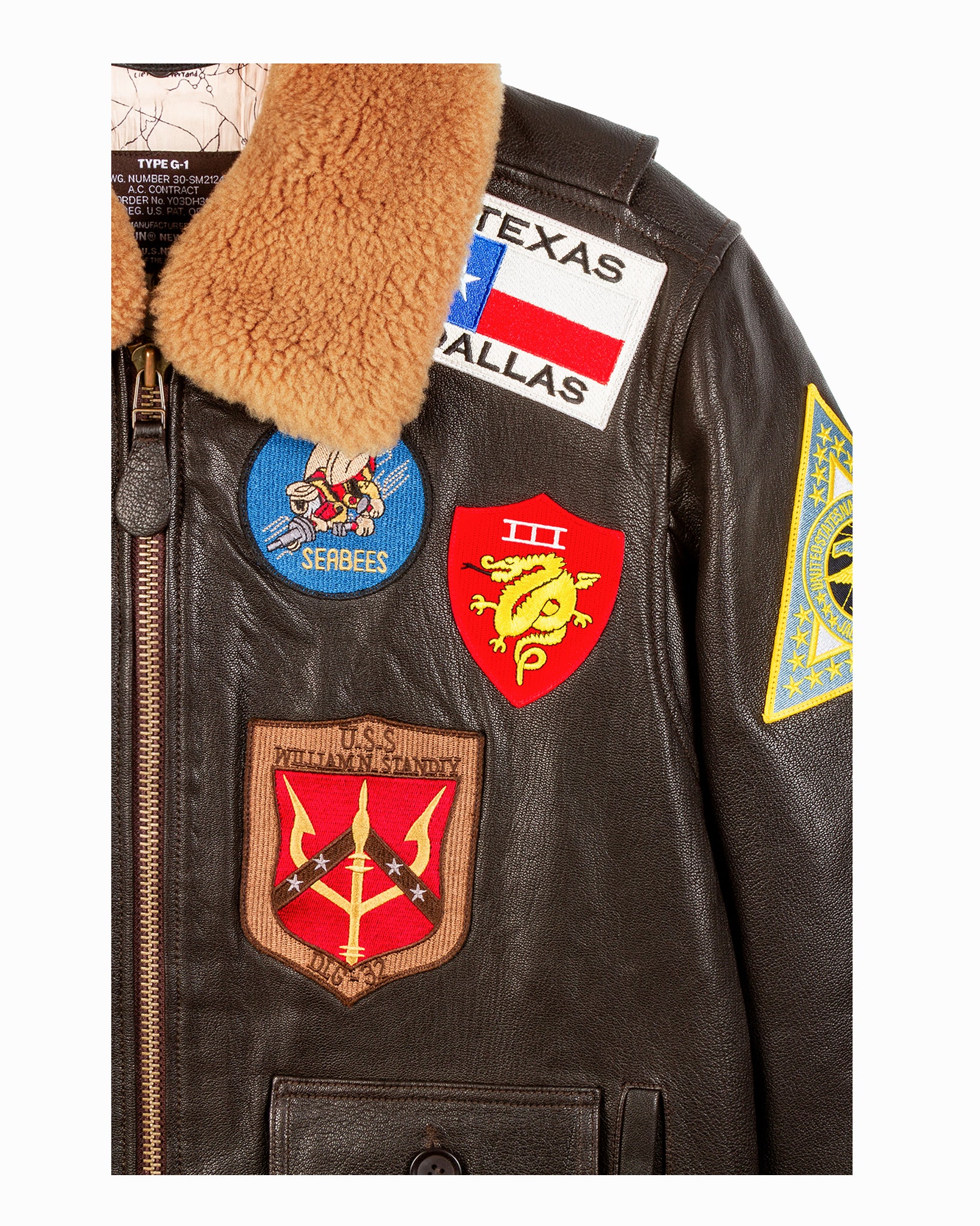 In 1986, a vintage G-1 Navy leather flight jacket was sourced from a thrift shop and customized with colorful patches for the iconic Top Gun movie. Top Gun® brand was founded in 1996 and recreated the legendary Top Gun® leather flight jacket, capturing the spirit of aviation. Top Gun® brand owns the exclusive worldwide rights for Top Gun® leather jackets and global rights for a vintage aviation apparel line featuring flight jackets, aviation-themed sportswear, and must-have souvenirs.