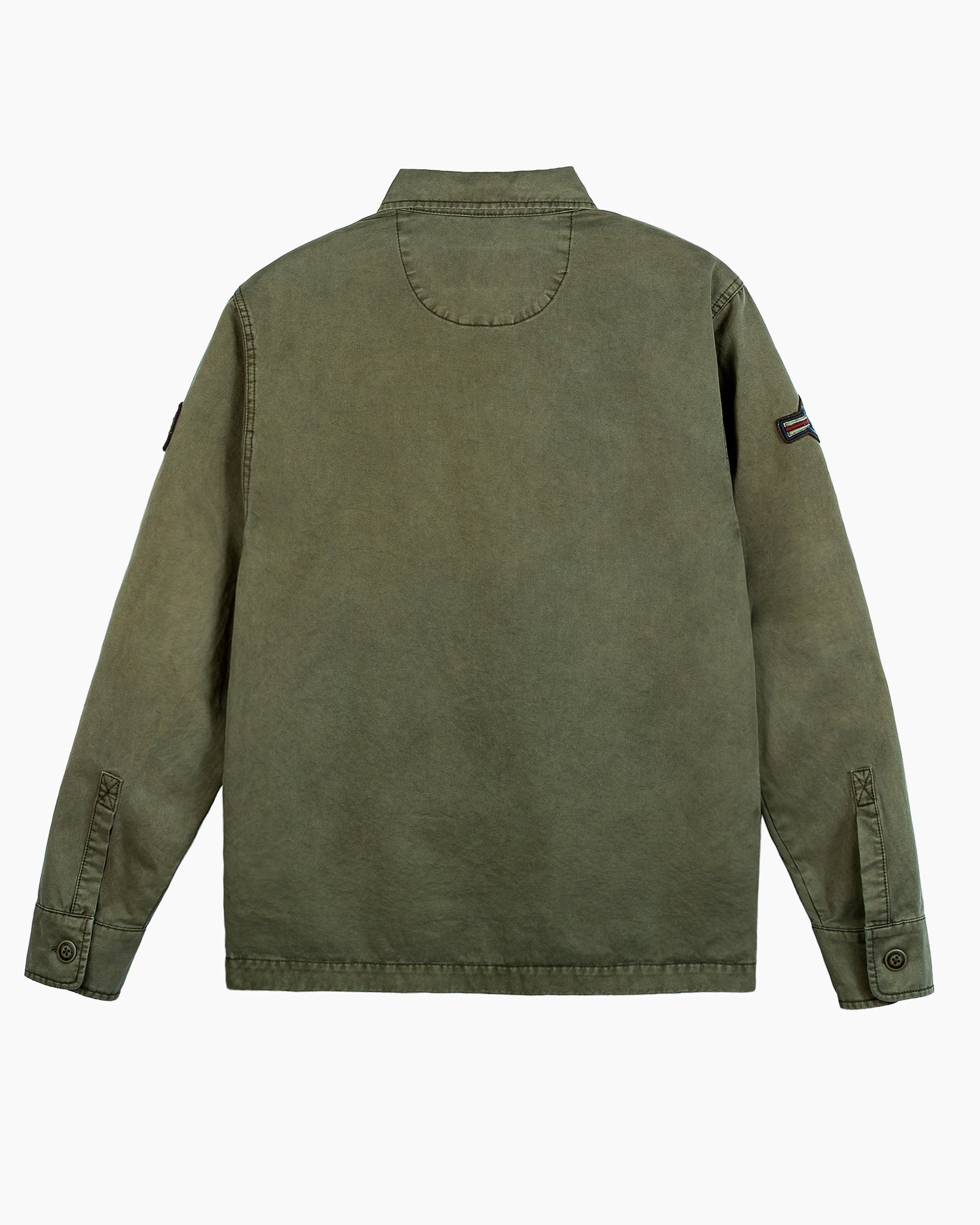 100% cotton • Vintage wash • Button front • Chest flap pockets • Shoulder patches • Distressed chest detailing
